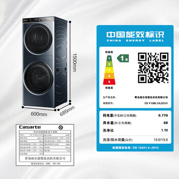 卡萨帝(Casarte)中子和美平嵌 13公斤滚筒洗衣机全自动+双擎热泵烘干机家用洗烘套装 洗干护三合一C9 Y13BL13L2CU1