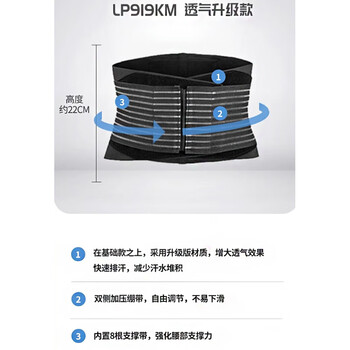 LP919护腰带运动支撑透气型篮球深蹲防护护具男女士通用 L/XL