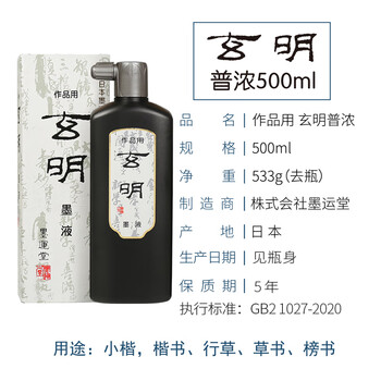 玄明 进口墨汁墨液 普浓500ml 日本树脂胶毛笔字墨水 文房四宝书法国画作品墨汁