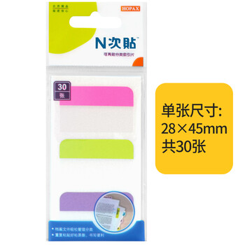 N次贴(STICKN)荧光指示标签贴分类便签纸便利贴索引片45*28mm 纸标头易书写30枚3色34047