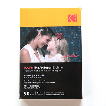 KODAK柯达 4R/6英寸艺术型蚀刻照片纸210g喷墨打印相纸家用强兼容 50张装9891-199