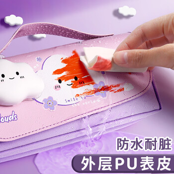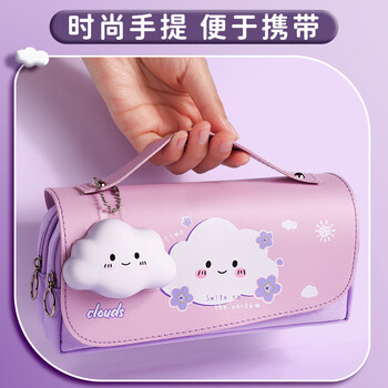 金值 紫色云朵解压笔袋 网红手提大容量文具盒小学生儿童女孩简约减压铅笔盒可爱少女心文具开学必备生日礼物