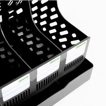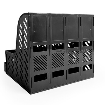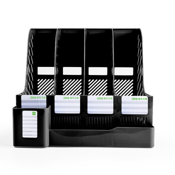 递乐 加厚多功能笔筒四联文件框/文件栏/组合文件架/资料架/文件筐 四栏带收纳盒 1899黑色