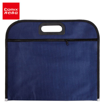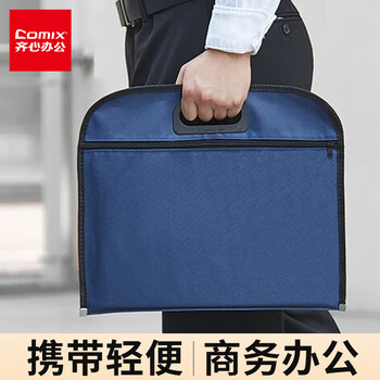 齐心(COMIX)B4事务包拉链袋 手提袋商务会议包 文件资料收纳包 牛津布双格文件袋/资料袋 蓝色A1670