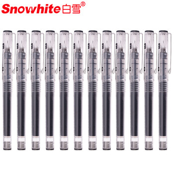 白雪(snowhite)X55 直液式走珠笔可换笔芯中性笔多色签字笔学生用笔0.5mm黑色12支/盒
