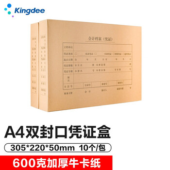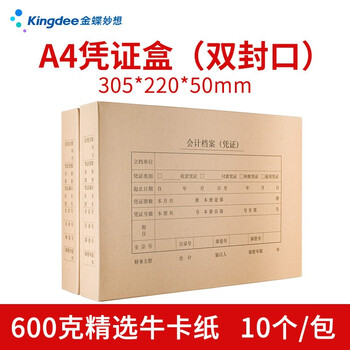 金蝶(kingdee)A4凭证盒双封口600牛卡纸财务会计凭证装订档案收纳盒 305*220*50mm 10个/包