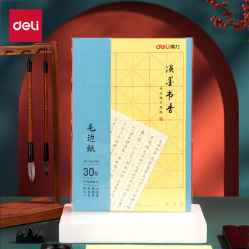 得力30张八开12格书画练习纸毛边纸 黄色书法纸 文房四宝书法礼物 开学文具