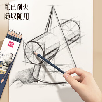 得力(deli)高级绘图铅笔12支2H素描铅笔学生六角杆书写黑铅美术写生工程制图笔初学者专用学生开学文具
