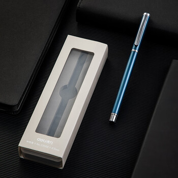 得力(deli)0.5mm中性笔金属会议签字笔 附笔盒深空蓝33588