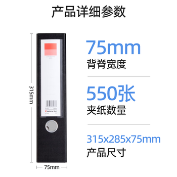 齐心(COMIX)3寸加厚欧式快劳夹A4文件夹带孔资料夹两孔活页夹背宽75mm夹纸宽度55mm 黑色 A106N