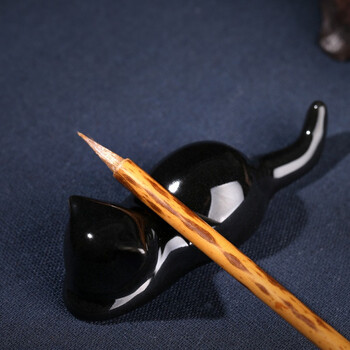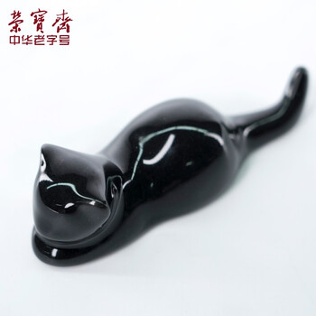 【全网低价】荣宝斋 笔搁 文房四宝书法国画笔掭笔山笔托毛笔架镇纸尺招财猫陶瓷器 汝窑黑釉萌系小猫笔搁-黑