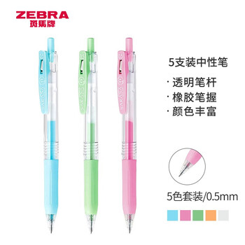 斑马牌(ZEBRA)JJ15-MK 牛奶系彩色中性笔 0.5mm子弹头按动啫喱笔标记笔 学生手账笔柔色水笔 5色套