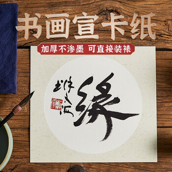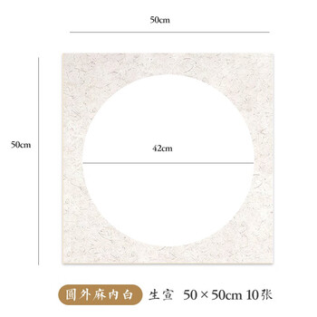一海堂 文化 宣纸 卡纸文房四宝国画书法绘画装框用硬卡方形镜片纸 圆外麻内白-生宣 50*50cm*10张