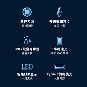飞科(FLYCO) 剃须刀 电动刮胡刀全身水洗 充电式胡须刀刮胡子刀 FS901星空蓝Type-C充电