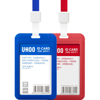 优和(UHOO)商务证件卡套 竖式 1个卡套+1根挂绳 员工胸牌厂牌工作证 大红 6004