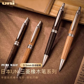 uni三菱 学生自动铅笔0.5mm 百年橡木杆活动铅笔商务礼品笔 M5-1015 粗杆浅木色
