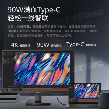 飞利浦(PHILIPS) 27英寸办公显示器 4K 护眼低蓝光 IPS Type-C90W 音响 旋转升降 智能双芯电脑显示屏 279P1