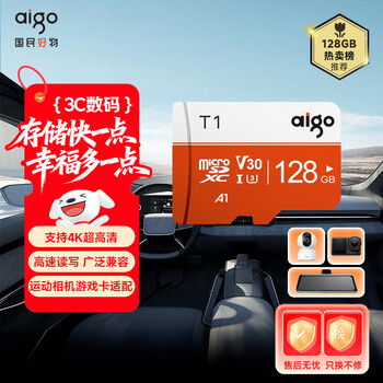 爱国者(aigo)128GB TF(MicroSD)存储卡 U3 A1 V30 4K 监控摄像头 行车记录仪专用高速内存卡 T1 读速100MB/s