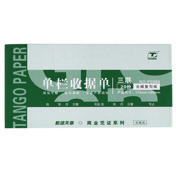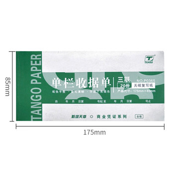 天章(TANGO)54K三联单栏收据175*85mm/无碳复写会计手写单据/销售购物付款/带撕裂线/30组 十本装 财会用品