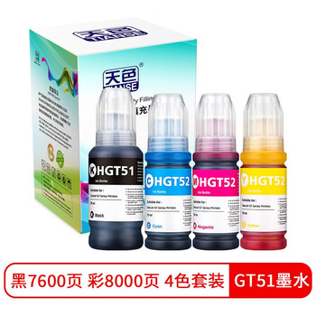 天色GT51XL/GT52XL四色大容量墨水适用惠普HP Officejet GT5810墨仓式打印机墨水GT5820墨水