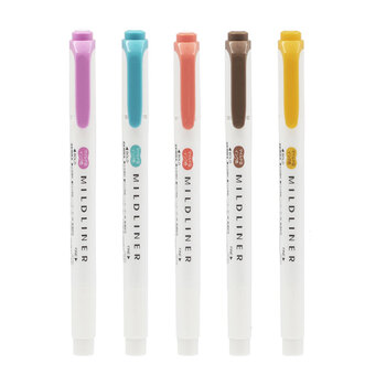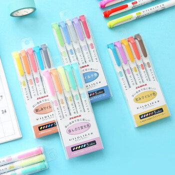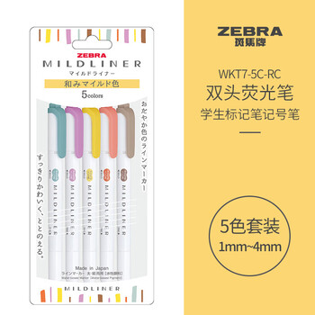 斑马牌 (ZEBRA)荧光笔 WKT7 5色套装 舒缓系列 双头荧光笔 学生标记笔记号笔 WKT7-5C-RC