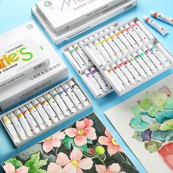 马利(Marie's)水彩颜料盒装18色12ml 便携铝管学生初学者儿童水彩绘画套装 膏体细腻色彩饱和E1338 速写 马克笔绘画