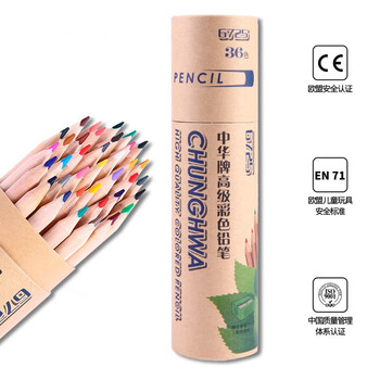 中华6725-36原木三角彩色铅笔儿童绘画开学季国庆出游礼物36色油性彩铅六一儿童节国庆出游礼物