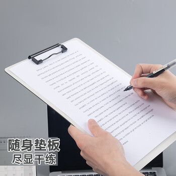 飞兹(fizz)金属强力板夹A4加厚PP材质/写字垫板/硬文件夹板/办公用品/学生文具/资料夹 白色A6383
