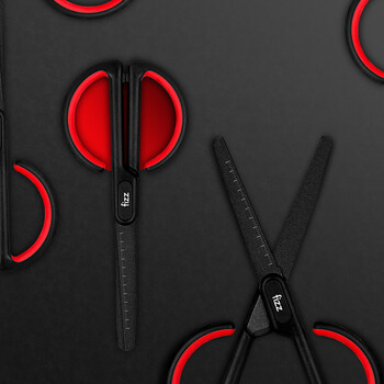 飞兹(fizz)特氟龙材质防粘防水不锈钢弧形省力剪刀自带刻度安全圆头办公居家拆快递剪纸红色FZ212003