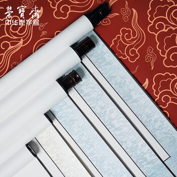 荣宝斋空白书画宣纸卷轴 安徽泾县日星全绫精裱复古横幅挂画立 书法作品国画手工空白挂轴 三尺整张-竖轴