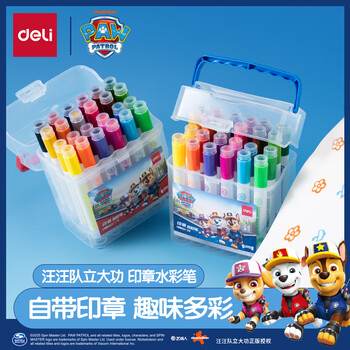 得力(deli)24色易清洗水彩笔印章头汪汪队立大功学生水彩笔儿童绘画笔彩绘涂鸦生日儿童礼物