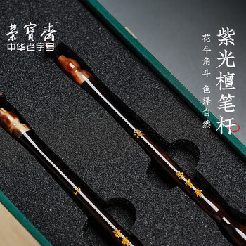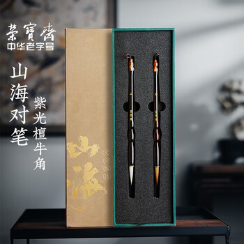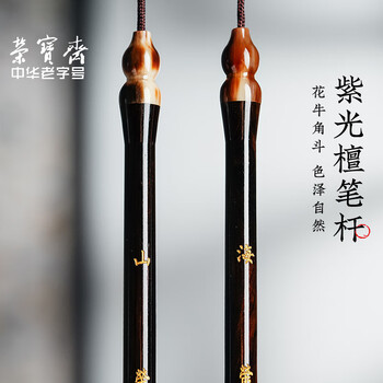 荣宝斋 毛笔套装 狼羊兼毫传统紫光檀牛角笔杆文房四宝书法国画写意行篆隶楷手作 高档精品收藏礼盒 山海
