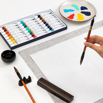 得力(deli)(deli)24色12ml中国画颜料水墨山水画矿物文房四宝绘画彩绘色彩入门学生文具美术套装73887