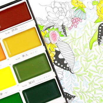 吴竹(KURETAKE)颜彩耽美固体颜料专业美术固体水彩颜料初学者学生用国画颜料水墨画古风工笔画18色MC20/18V