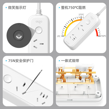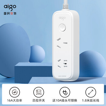 爱国者(aigo)16A大功率插座排插/16A转10A转换器空调插座一转二转换插头插排接线板 2位总控全长1.8米AC0201D