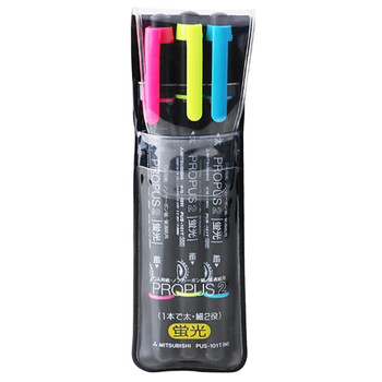 uni三菱 双头荧光记号笔 学生作业标记笔彩色绘画记号笔 细0.5mm粗4mm PUS-101T(N) 3色套