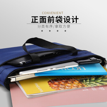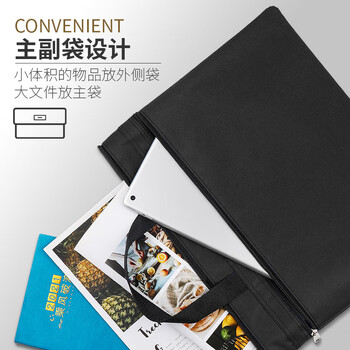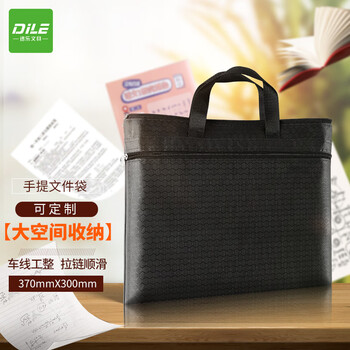 递乐 手提文件袋手提袋帆布公文包定制帆布办公用品双层商务会议资料袋事务包办公包男 1404黑色