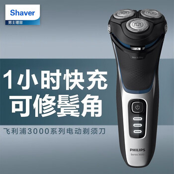 飞利浦(PHILIPS)电动剃须刀 高端3系干湿双剃 全身水洗1小时快充 旅行便携整机进口刮剃胡须刀 S3206/09