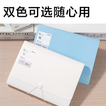 得力(deli)a4/13格扣绳设计炫彩手提文件包/风琴包收纳袋 分科目保护会议学生试卷收纳包 小学初高中蓝5238