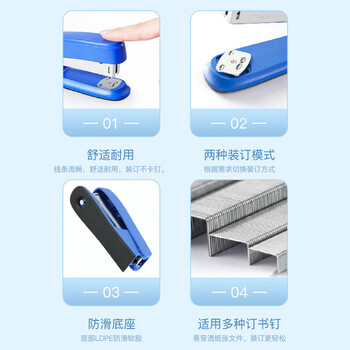 齐心(COMIX)20页舒适办公订书机/订书器 耐用订书机大号适配12#订书钉24/6钉 办公用品 B2982蓝色