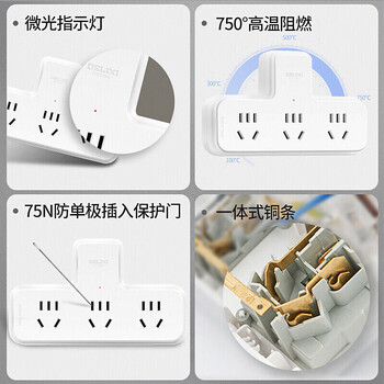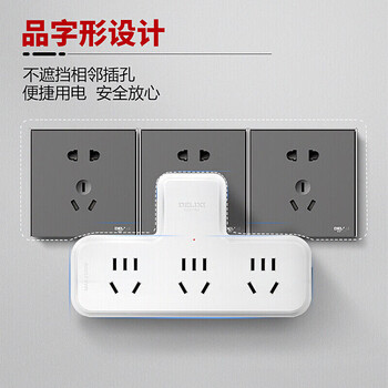德力西(DELIXI)转换插头/品字形一转三插座/无线转换插座/电源转换器/插排/排插 无控开关