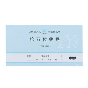 浩立信 拾万位单栏三联收款收据 B级财务单据175*95mm5本/包×150页/本 带撕裂线无碳复写 (5本*50组)