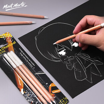 蒙玛特(Mont Marte)素描炭笔白色3支装 美术炭画铅笔绘画速写写生高光笔 美术生专用画画加粗碳笔MPN0041C 速写 马克笔绘画