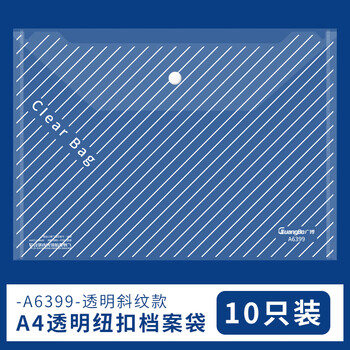 广博(GuangBo)(GuangBo)10个装A4按扣学生加厚透明防水文件袋试卷收纳学科分类档案袋办公用品 A6399