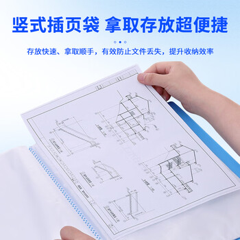 三木(SUNWOOD)A4/100页资料册/插袋文件册/活页文件夹 蓝色 P69-100