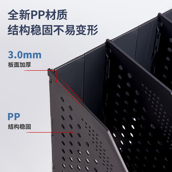 得力(deli)可折叠3联镂空桌面文件框栏书立架档案收纳盒 办公室带标签资料文件置物架书本资料收纳神器 深灰