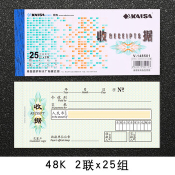 凯萨KAISA 二联防伪印花收据 48K(178×84mm) 25组 1本