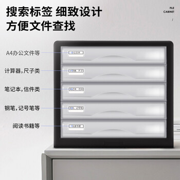 得力(deli)5层手拉办公桌书桌桌面收纳盒文件柜收纳柜抽屉式储物柜资料柜带索引标签试卷学科分类黑色