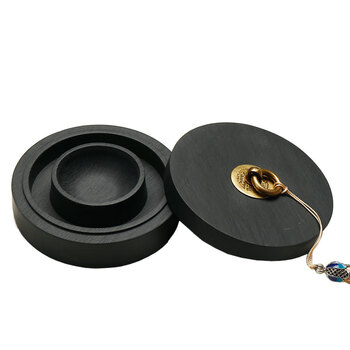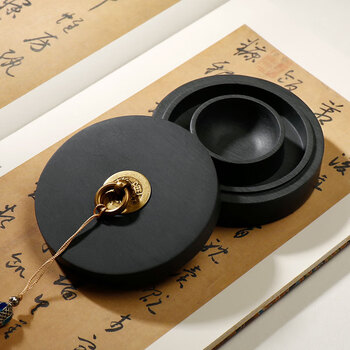 漢墨火锅砚台 双圈天然原石毛笔书法盛墨汁用4寸墨海 文房四宝铜环砚台带盖墨池无盒款