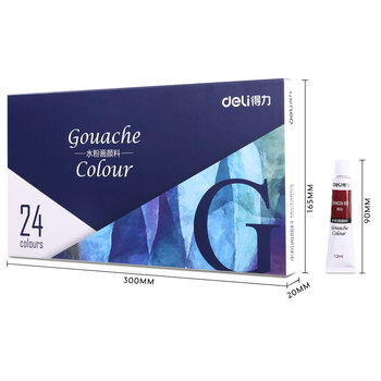 得力(deli)73855 美术绘画24色水粉颜料 盒装 规格:24色 类别:颜料 材质:水粉 用途:美术绘画